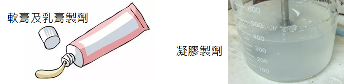2.凝膠製劑:水溶高分子溶液增稠製成的凍膠狀外用劑型。