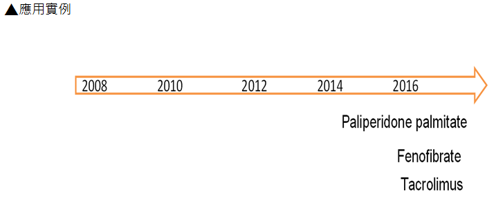 將難溶性藥物透過加入適當的分散劑,以奈米研磨設備進行藥物分散,可使藥物達到奈米等級,進而提昇藥物溶速度,達到提高藥物生體可用率的製劑。