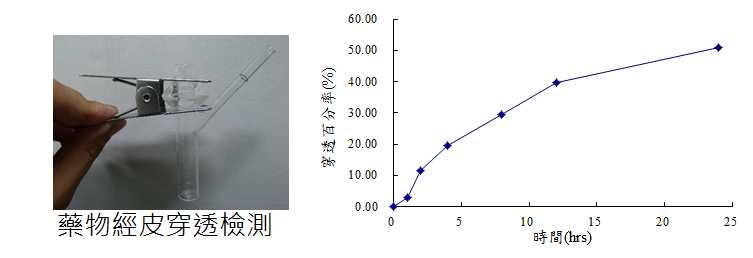 藥物經皮穿透檢測:經皮膜穿透性質檢測,是研究藥品與化妝品體外試驗,重要的研究工具,並可透過檢測,比對藥物體外釋放曲線的相似性。