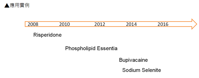 透過藥物微粒包覆技術,以乳化技術進行長效肌肉注射藥品開發,或以微脂粒進行標的注射製劑開發,同時以均一粒徑之生物降解微球技術,進行長效注射製劑開發,達到提高藥物方便使用之注射劑型。