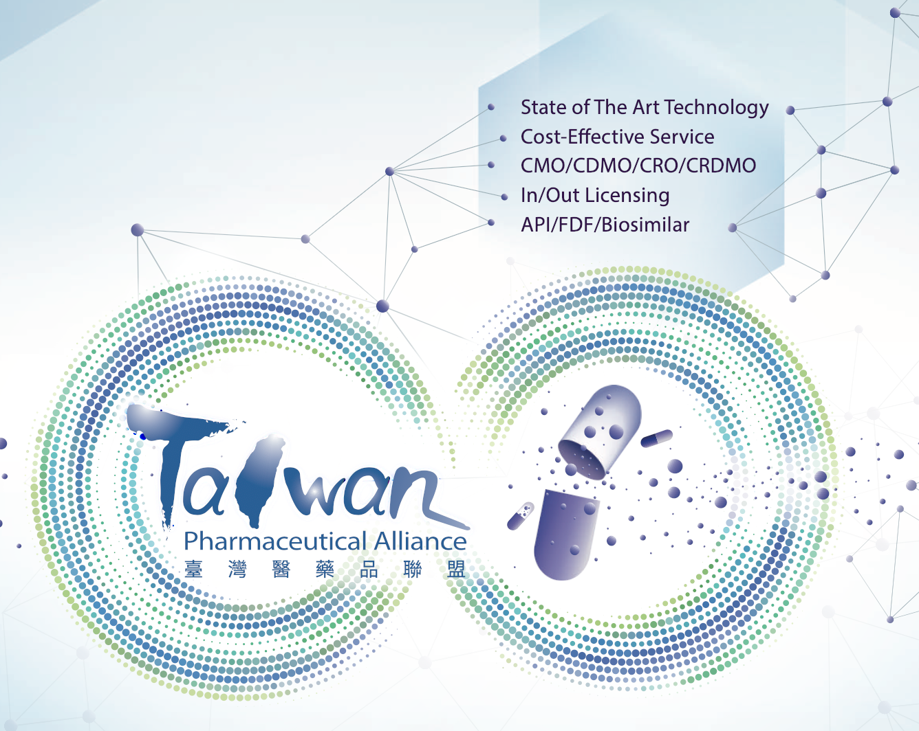 TPA會員由臺灣富有聲譽且值得信賴的醫藥品相關企業共同組成,提供一站式的產品與服務,包括原料藥(APIs)、利基學名藥、505(b)(2)藥品、生物製劑、生物相似藥、CRO服務以及醫療耗材等,涵蓋近90%的治療領域。 成品製劑劑型多元,包括常見之口服劑型、半固體製劑、注射劑、眼藥水或特殊劑型如:定量噴霧劑(MDIs)、乾粉吸入劑(DPIs)、鼻噴劑、貼片、外用藥等。