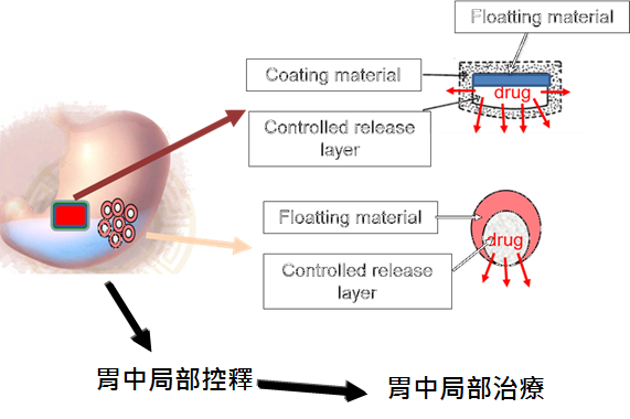 以胃漂浮材料延長藥物在胃部滯留時間,以膜衣包覆控制藥物釋放及維持錠劑漂浮在胃部上方