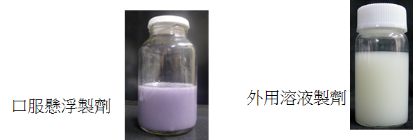 將藥物透過分散技術,製成溶液劑型或懸浮劑型,以作為口服或外用藥物之投與,方便進行劑量調整。