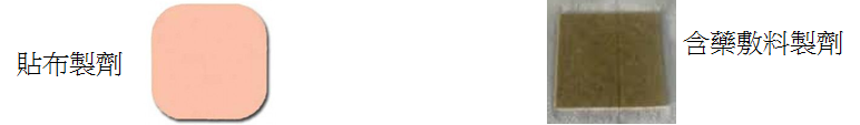 1.貼布製劑:將半固態的藥物分散配方,經由表面塗佈及乾燥的製造程序,將藥物均勻分布在薄片上,以作為藥物經皮膜吸收的黏著製劑。